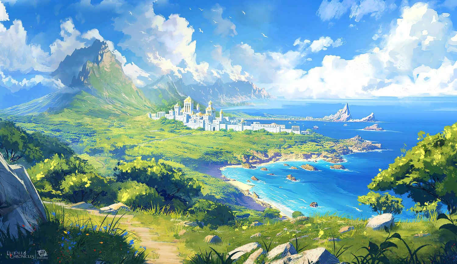 Enduring numerous trials upon the harsh seas, they persevered, unwavering in spirit. At last, they beheld a clearing in the eternal mist—and with it, the fulfillment of the prophecy: a new land, untouched and sunlit. There, they found lush nature, bathed in light and vibrant with life.